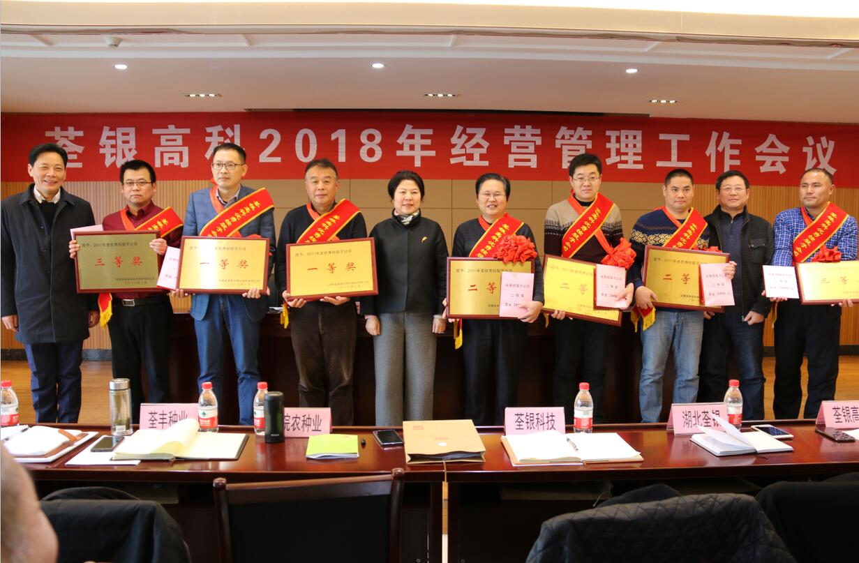 2017年度,荃銀高科各子(分)公司奮力拼搏,積極進取,為公司業績大幅提升作出了積極貢獻。會上,對荃銀高科2017年度優秀控股子公司進行了表彰獎勵,以鼓勵先進,鼓舞士氣。