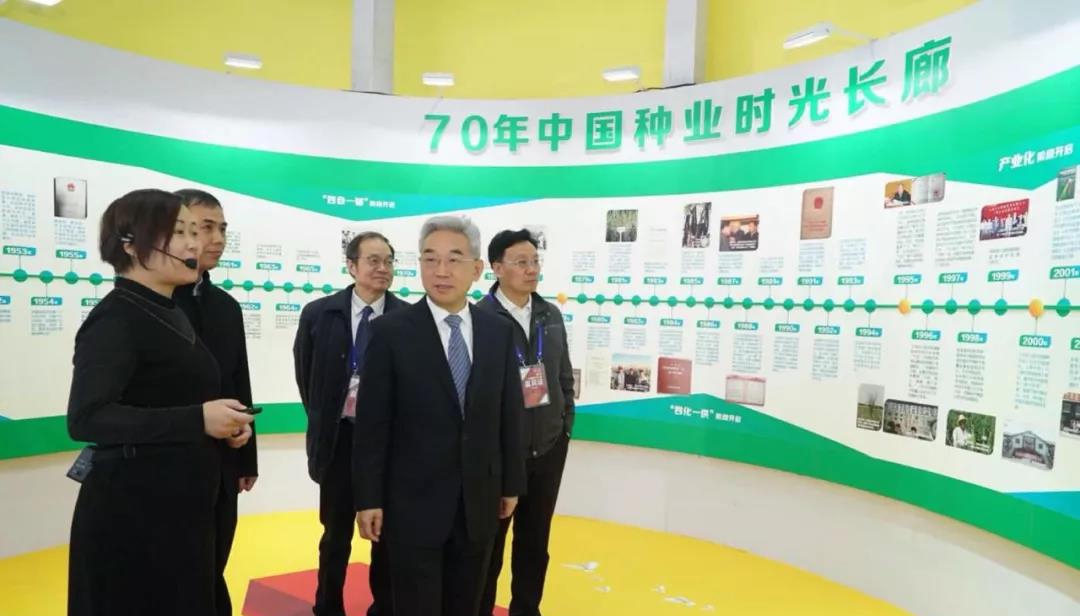 ??? 開幕式后,張?zhí)伊指辈块L參觀了“種子力量——新中國成立70周年與改革開放40年中國種業(yè)成就展”以及企業(yè)展廳。農(nóng)業(yè)農(nóng)村部科技教育司司長廖西元、種業(yè)管理司副司長周云龍、種業(yè)管理司副司長吳曉玲、中國種子協(xié)會副會長鄧光聯(lián)等領(lǐng)導(dǎo)陪同巡展。