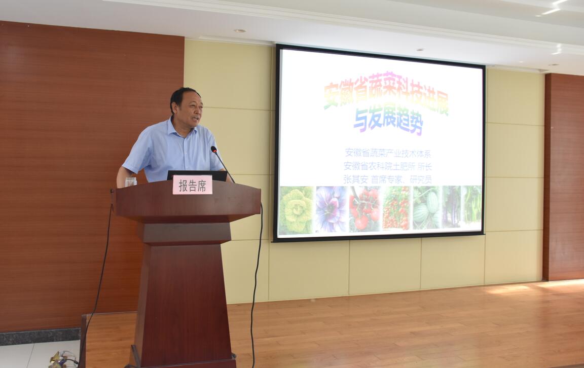 ??? 張其安研究員在會上作《安徽省蔬菜科技成就與發(fā)展趨勢的報告》,詳細講解了蔬菜育種關(guān)鍵技術(shù)重要進展及未來發(fā)展方向,聯(lián)盟成員就相關(guān)研究方向進行了現(xiàn)場問答與討論。