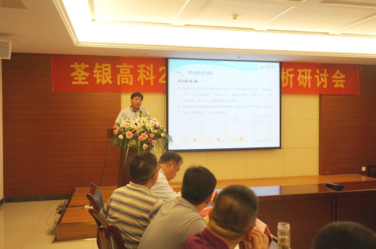 ??? 會(huì)上,公司副總經(jīng)理、首席技術(shù)官、荃銀農(nóng)科院院長(zhǎng)張從合先生作荃銀高科科研發(fā)展規(guī)劃報(bào)告,回顧和總結(jié)了公司科研成果成效,規(guī)劃了未來(lái)科研發(fā)展方向和育種目標(biāo)。公司始終堅(jiān)持科技創(chuàng)新,注重科企合作,培育優(yōu)良品種,為公司持續(xù)發(fā)展不斷注入新動(dòng)力。