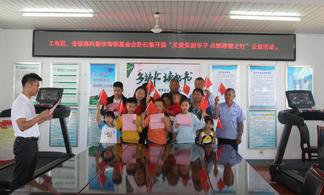 ??? 2019年9月26日,為積極響應和認真落實合肥市工商聯(lián)、總商會關(guān)于合肥市民營企業(yè)“百企幫百村”精準扶貧行動實施方案精神,荃銀高科攜手安徽張海銀種業(yè)基金會赴長豐縣陶樓鎮(zhèn)石集社區(qū)開展“關(guān)愛貧困學子,點燃希望之燈”公益活動。合肥市工商聯(lián)副主席沈鑫、經(jīng)濟處主任科員陳焱垚,安徽張海銀基金會秘書長張彤,荃銀高科工會主席、辦公室主任鄭滿生,荃銀瓜菜公司副總經(jīng)理陳孝奇,陶樓鎮(zhèn)石集社區(qū)書記靳進等村委工作人員參加活動,并進行座談交流會。